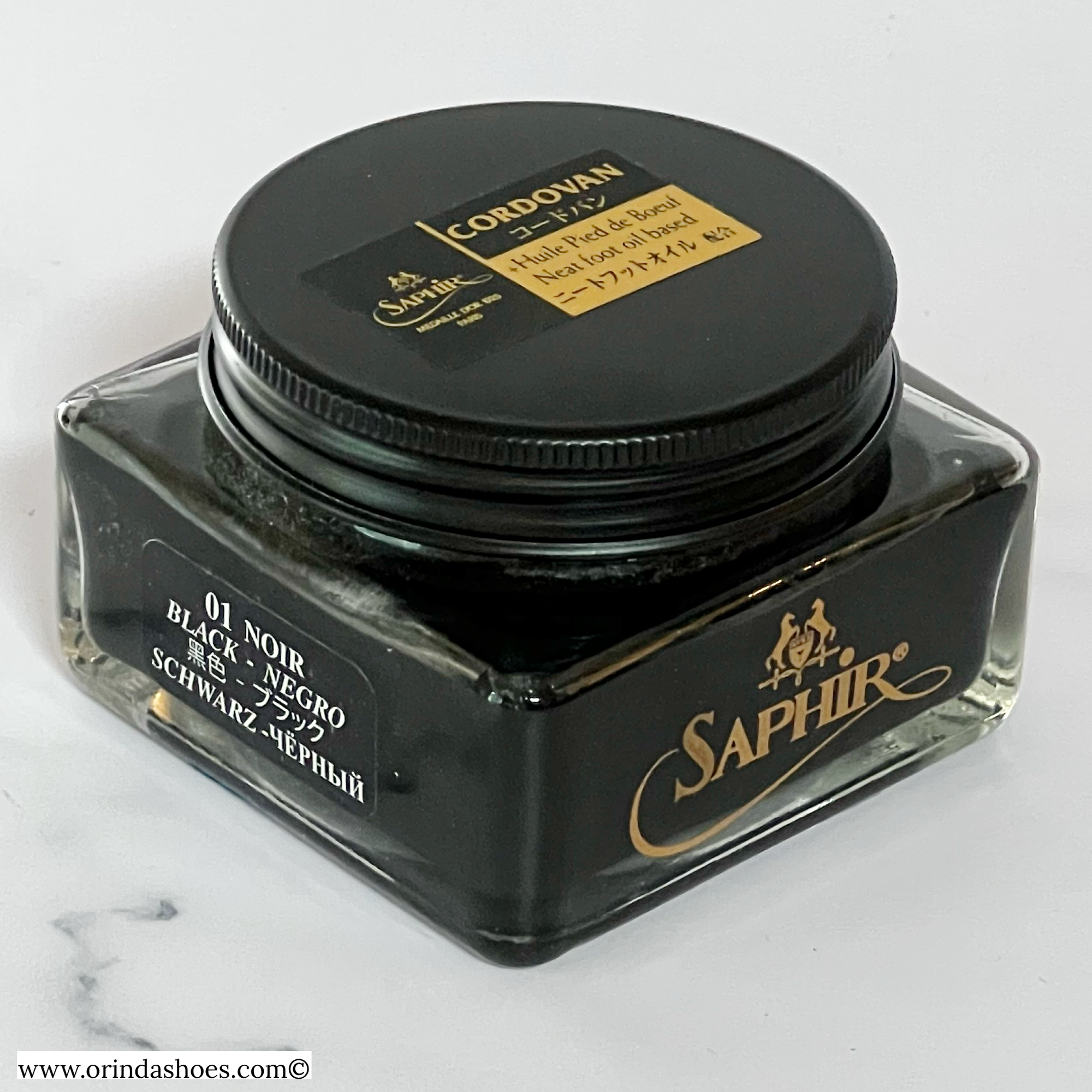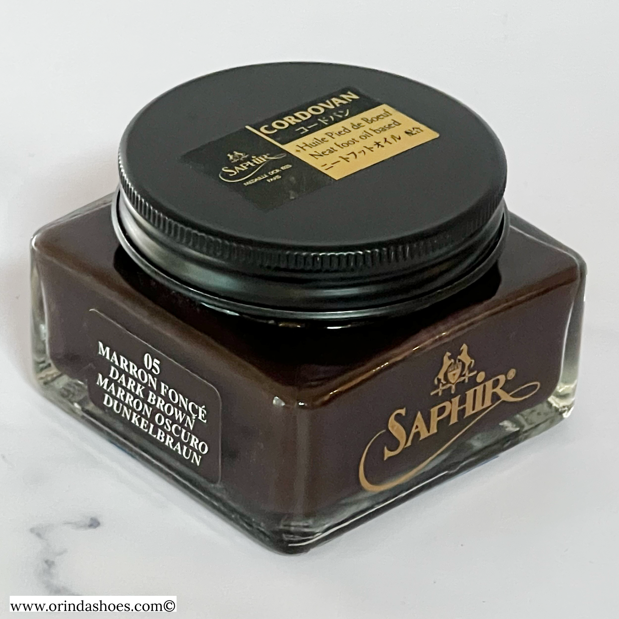Saphir Médaille d’Or Cordovan Cream Shoe Polish is formulated with beeswax, solvents, a high concentration of pigments and neatsfoot oil to penetrate deeper into leather to maintain suppleness and sheen. It was specifically developed to nourish and protect Cordovan leather.