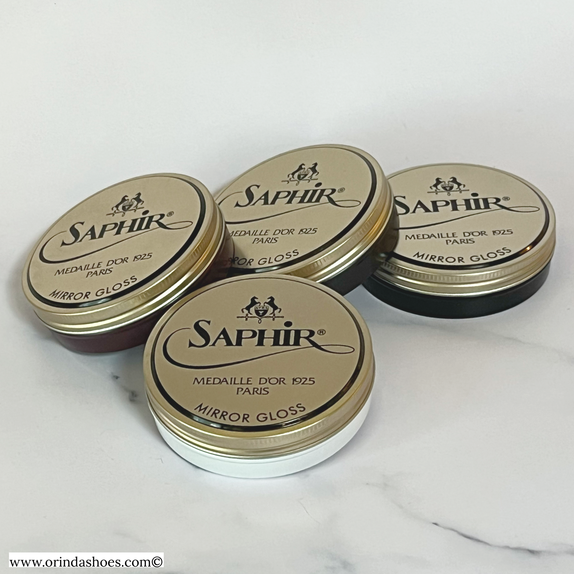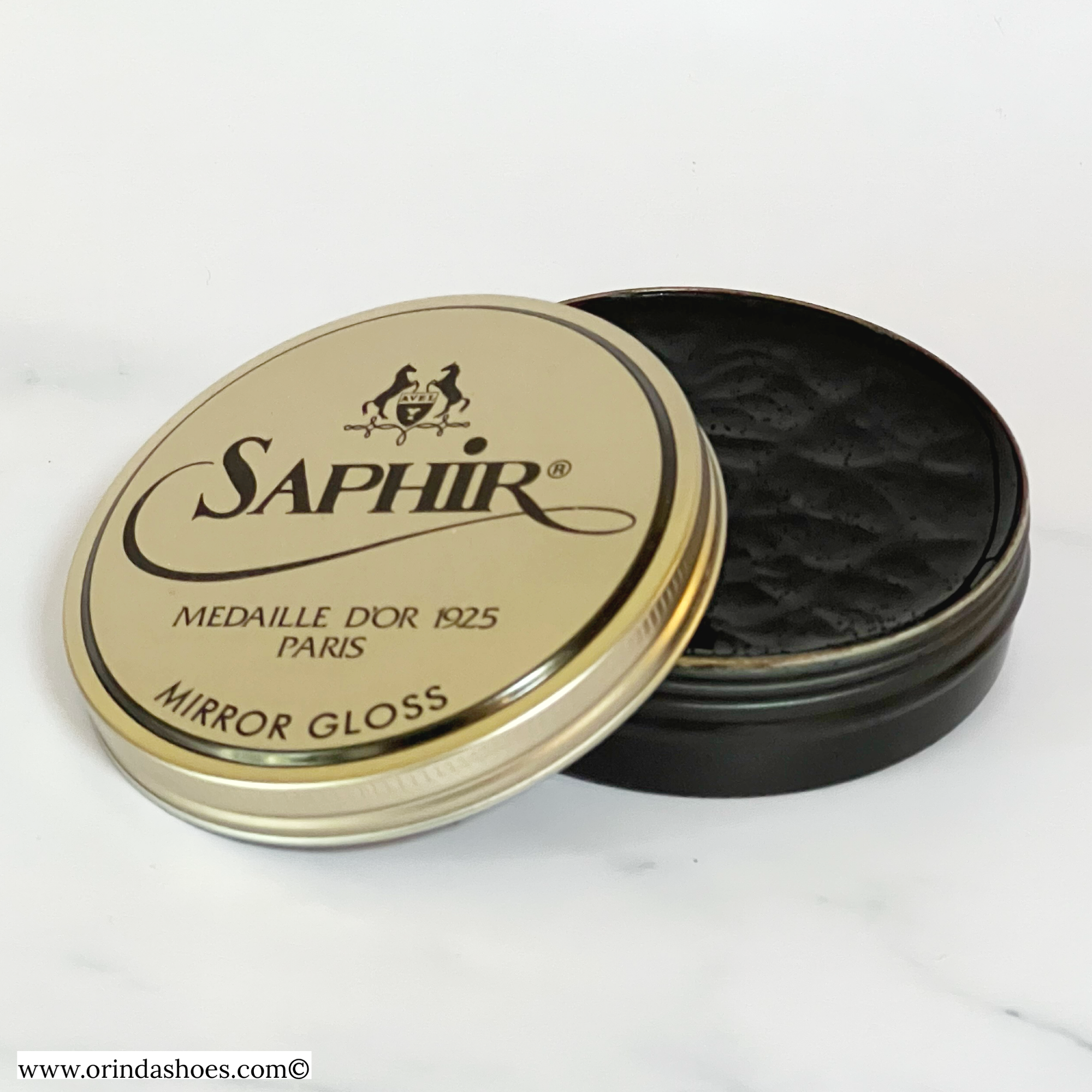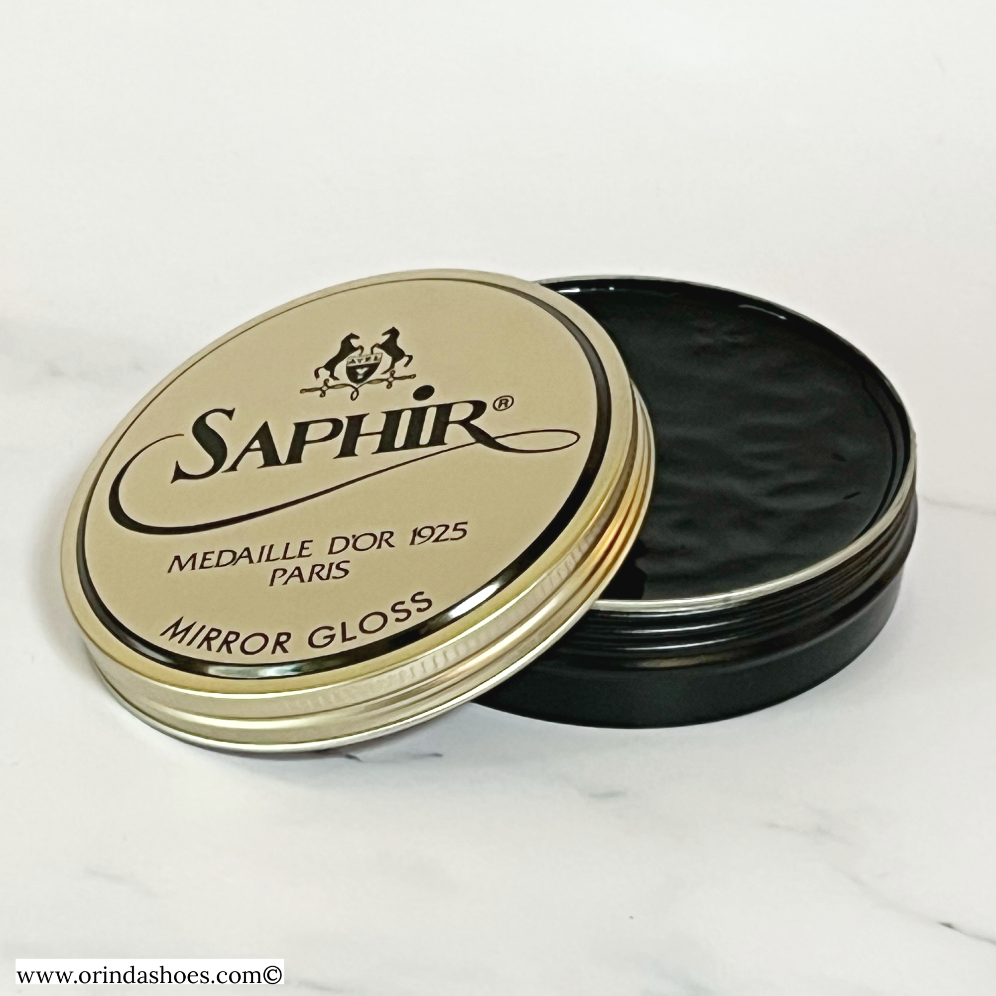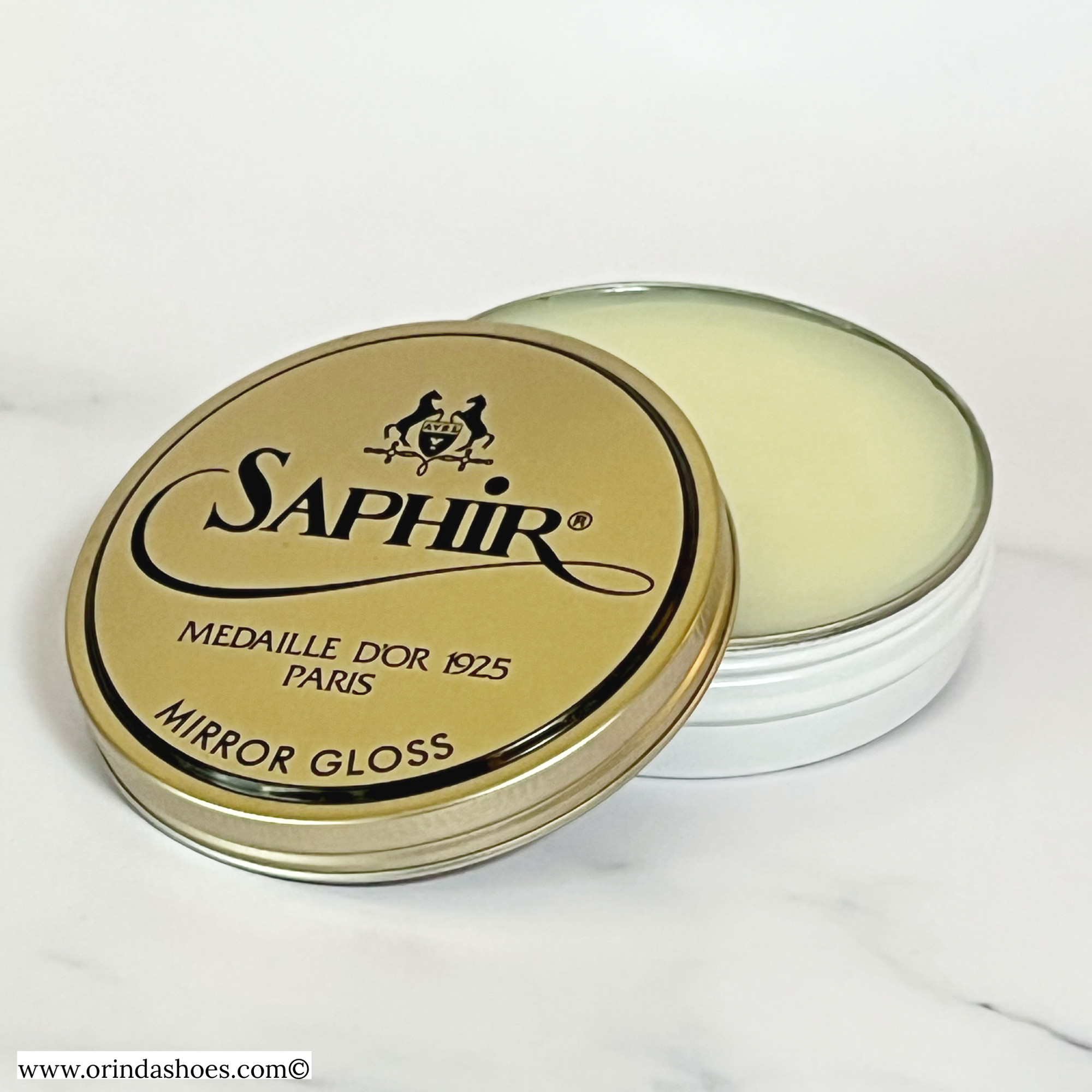 Saphir Médaille d’Or Mirror Gloss wax polish provides a high-shine finish to shoes. It is composed of naturally glossy Beeswax, Carnauba and Montan waxes.