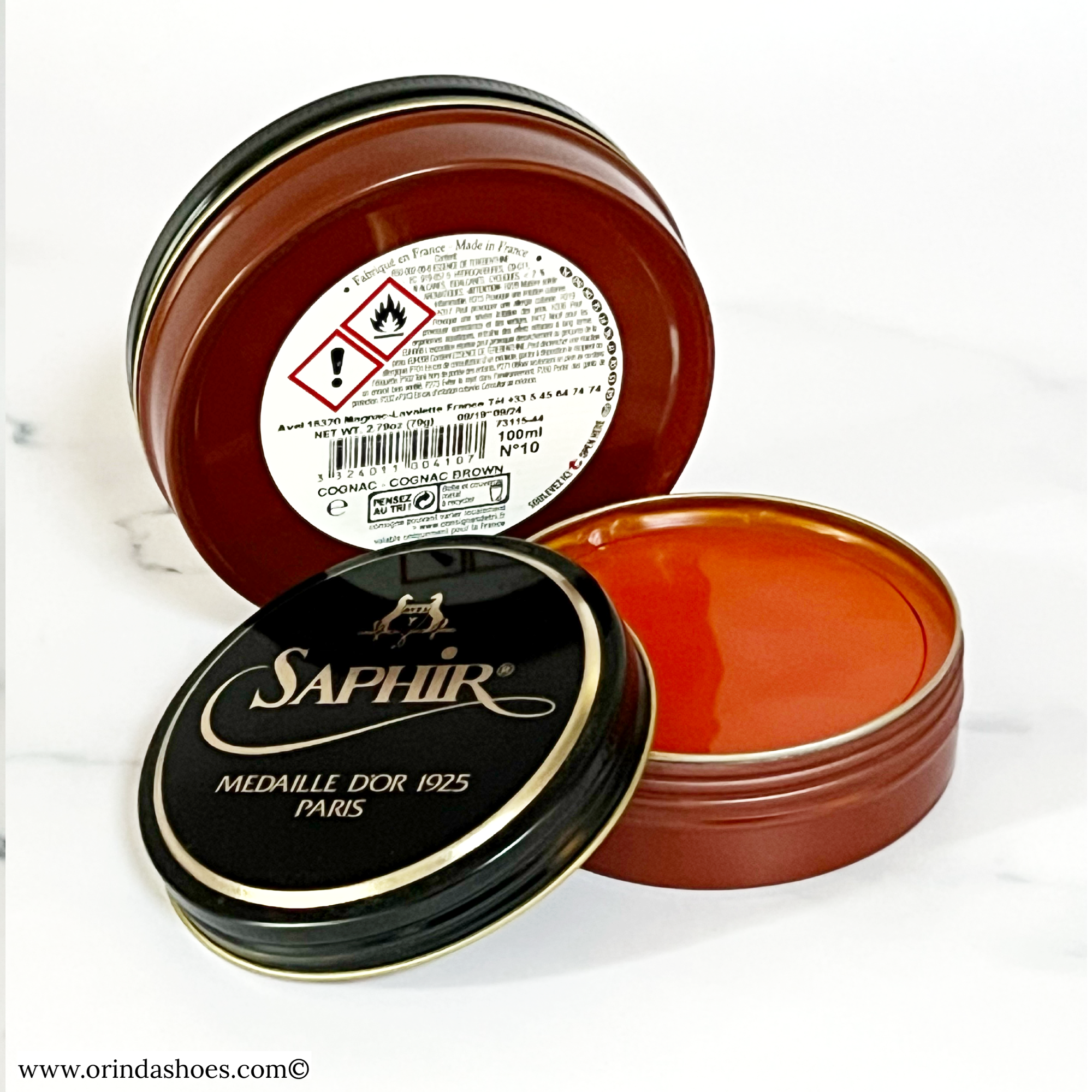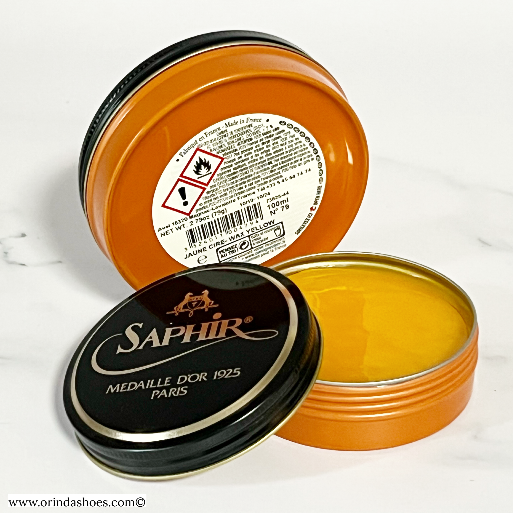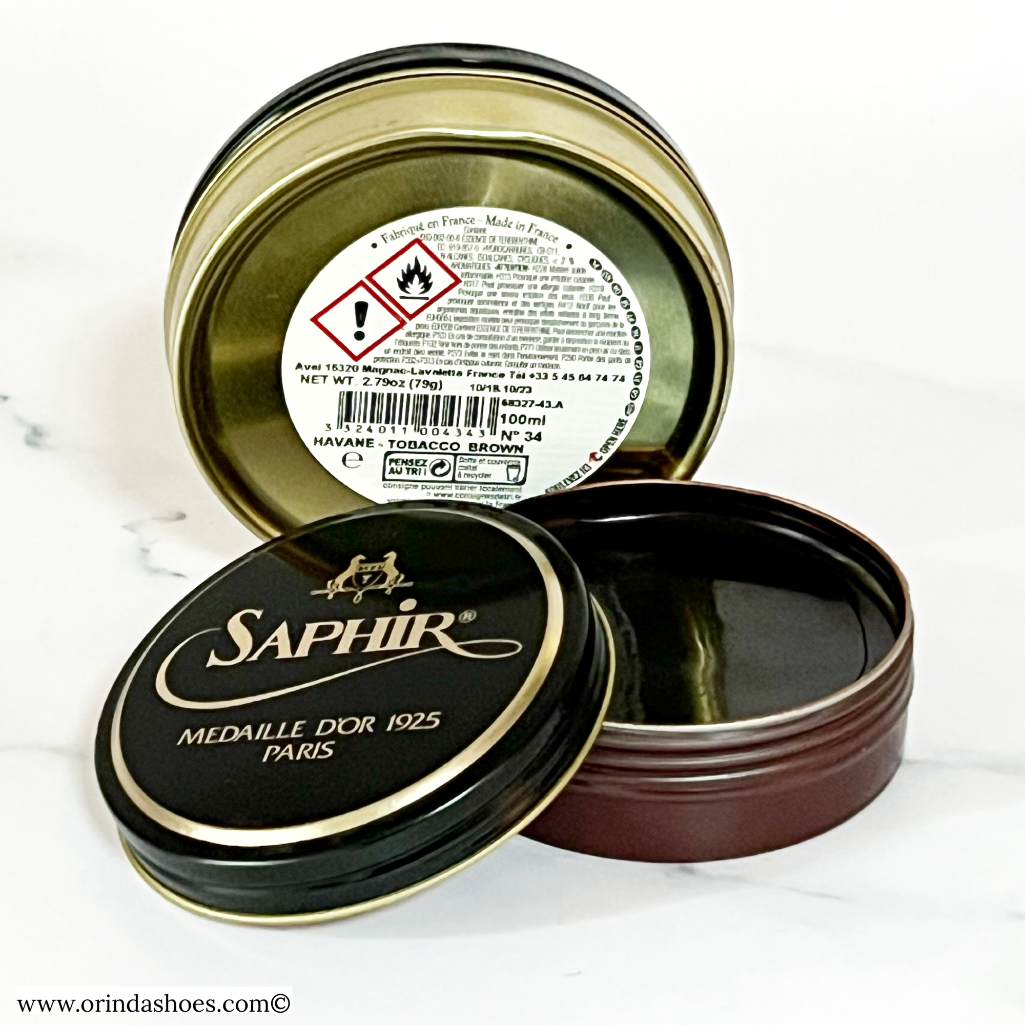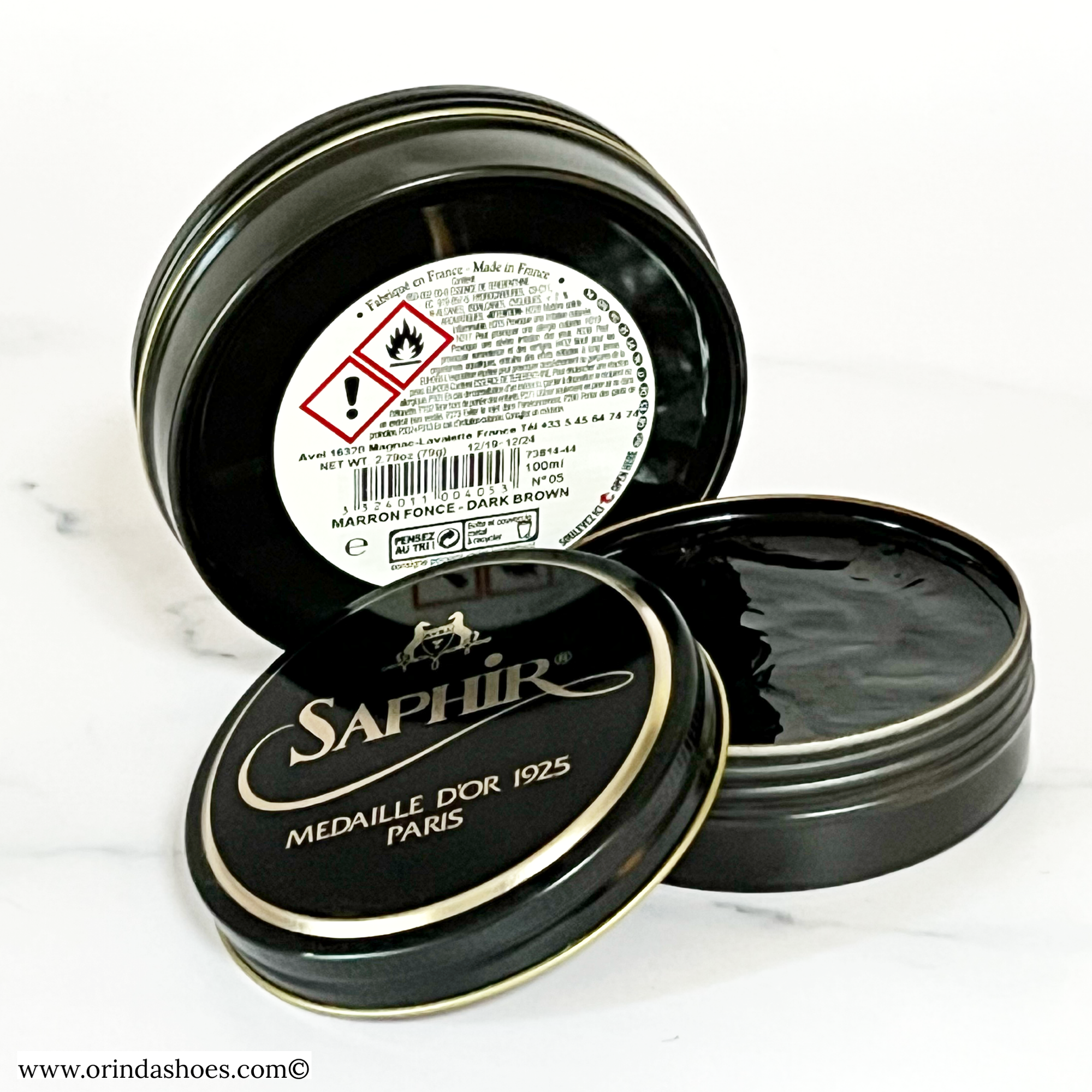 Saphir Médaille d’Or Pâte De Luxe wax polish is a unique traditional formulation. The finest natural oils and waxes are used to achieve superior cleaning, nourishing, and protection while producing a high-gloss shine to leather goods.