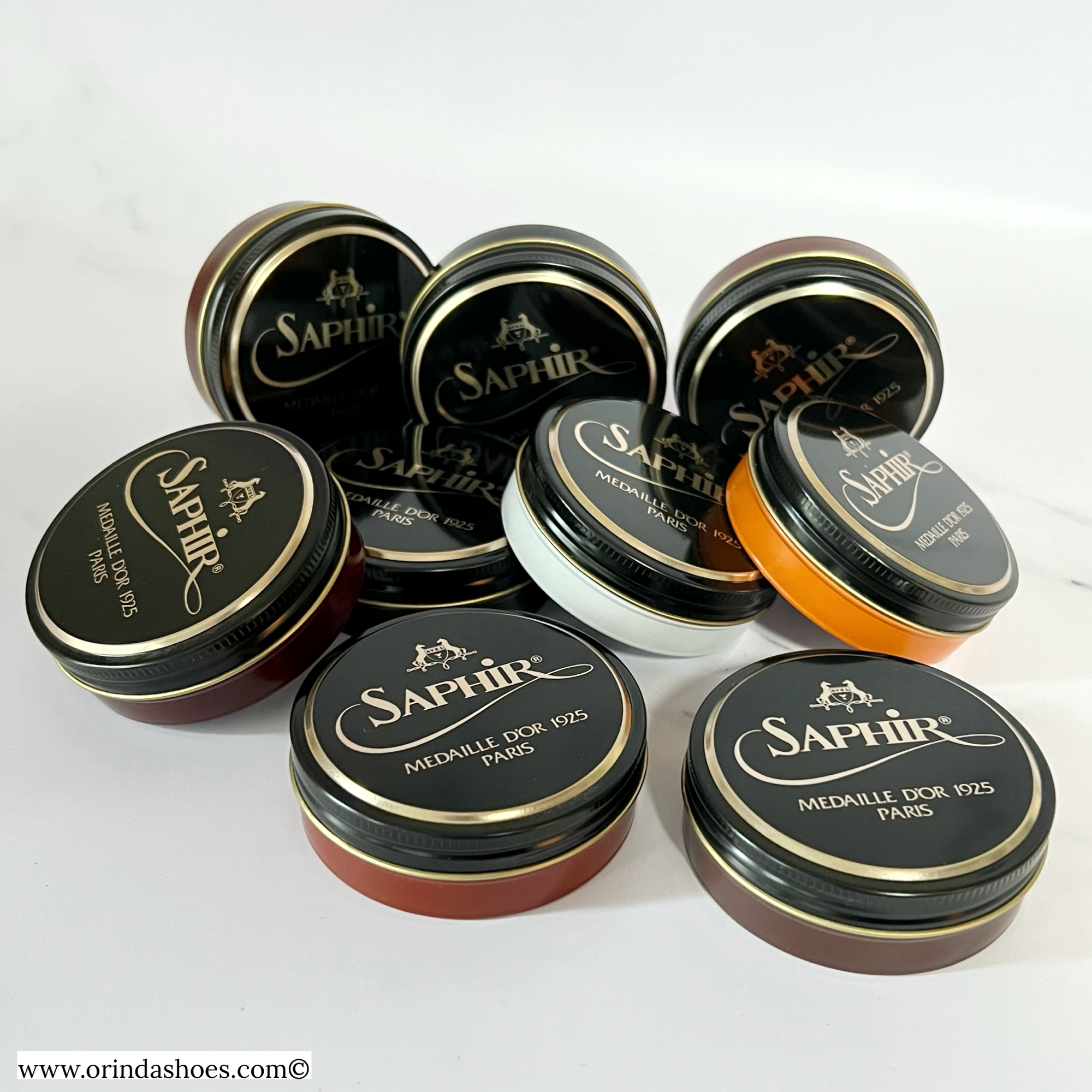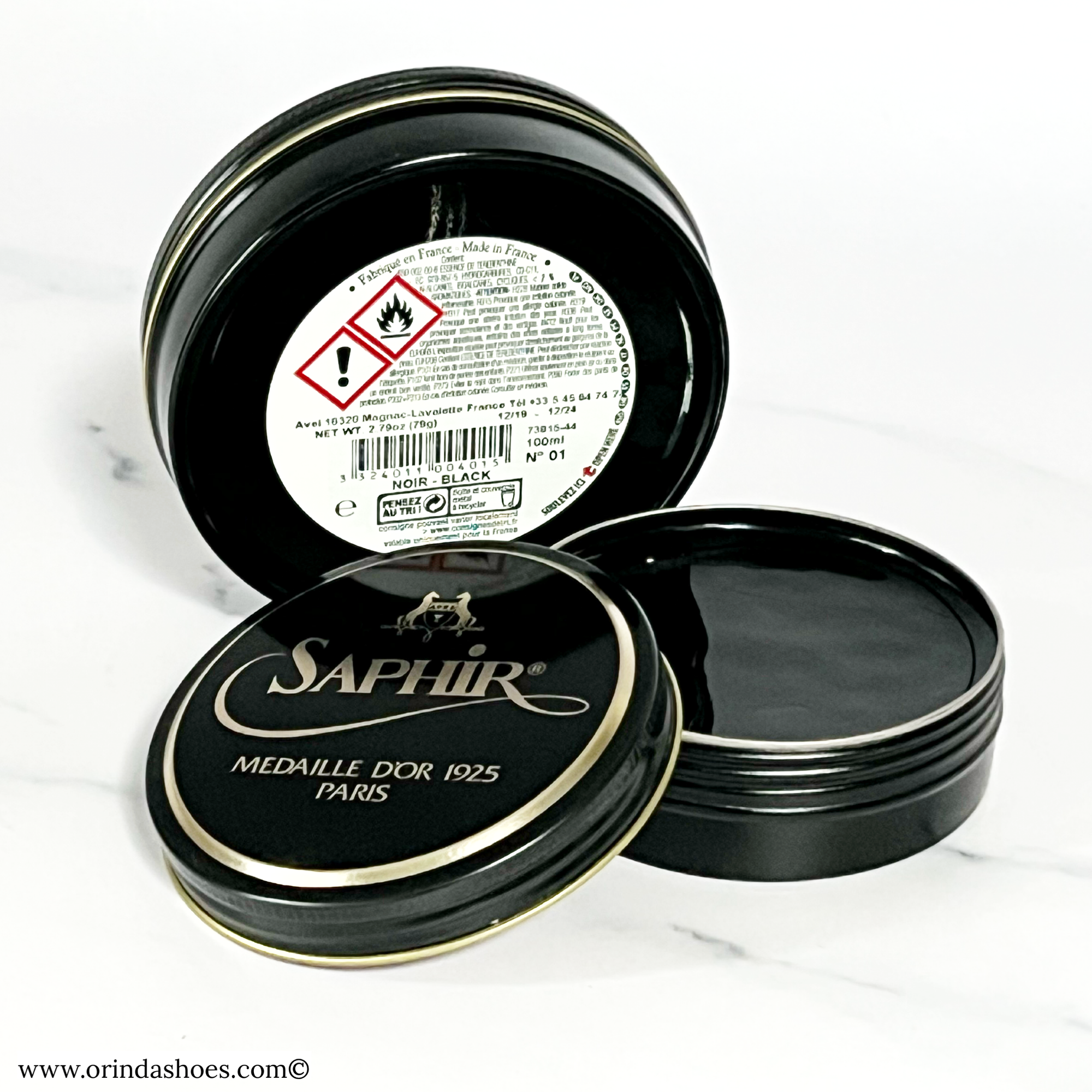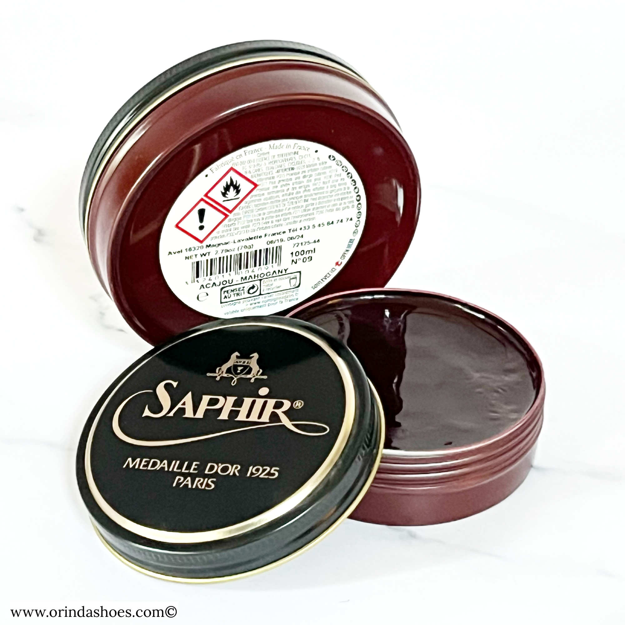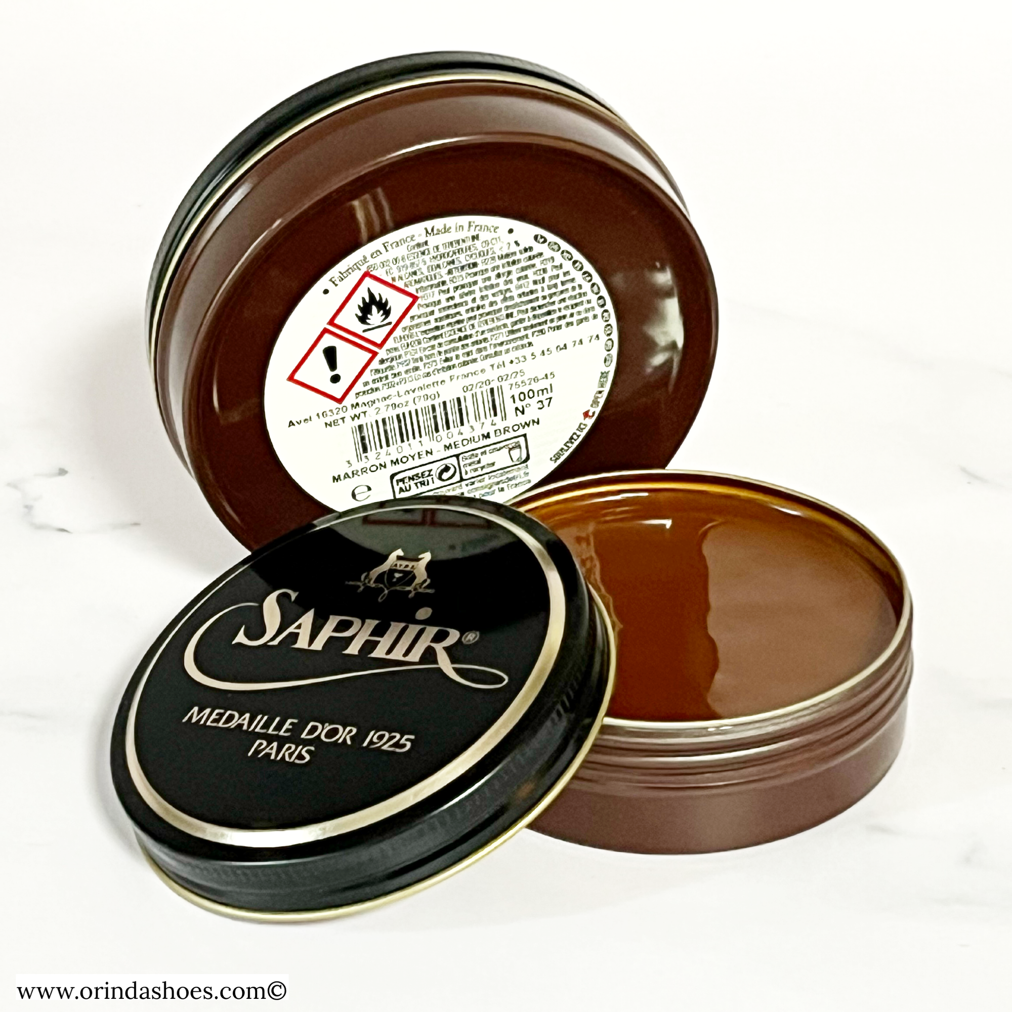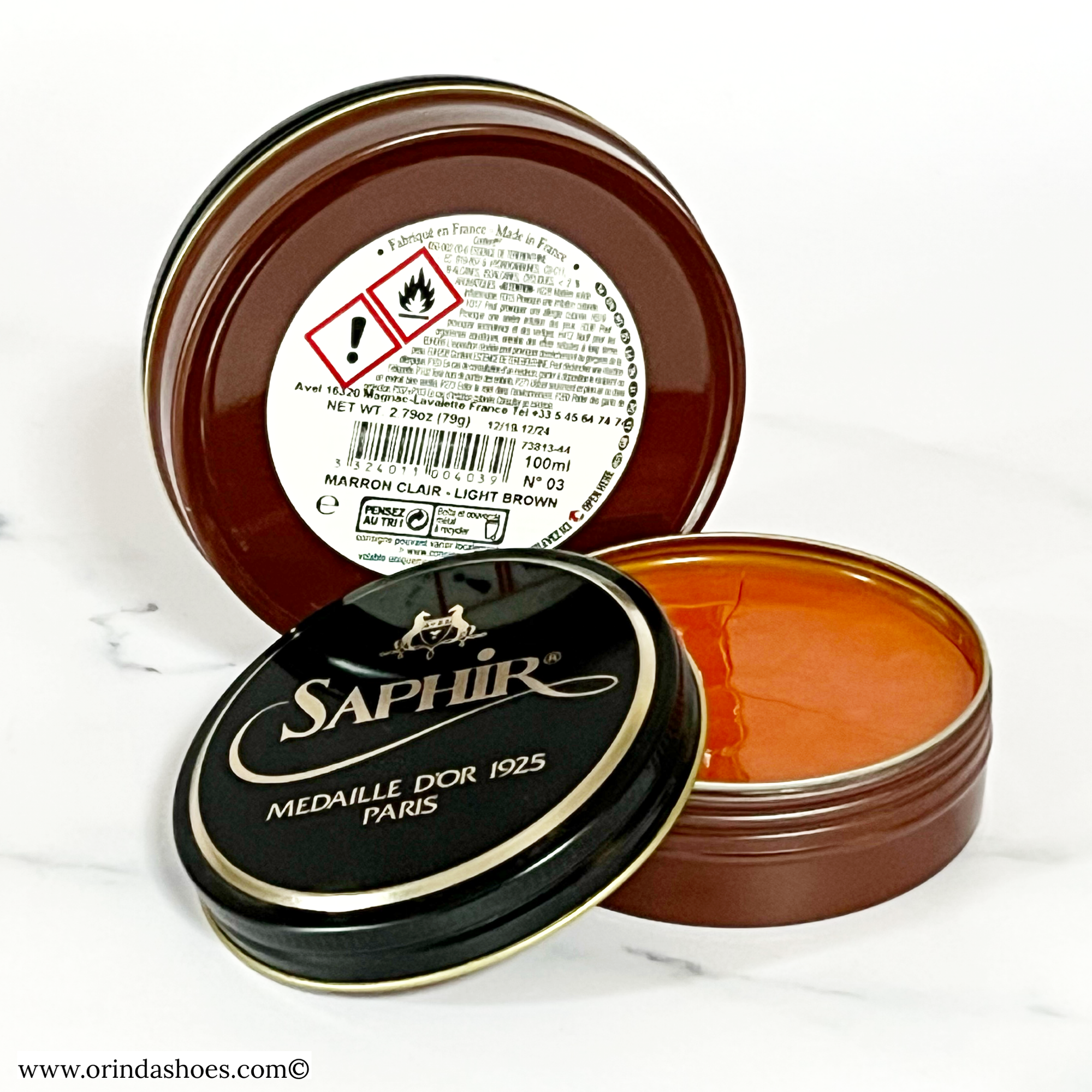 Saphir Médaille d’Or Pâte De Luxe wax polish is a unique traditional formulation. The finest natural oils and waxes are used to achieve superior cleaning, nourishing, and protection while producing a high-gloss shine to leather goods.