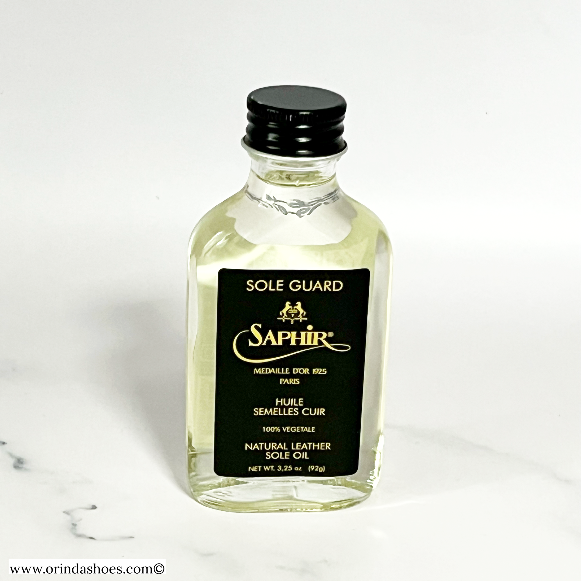 Saphir Médaille d’Or Sole Guard limits premature wear of leather soles by reducing abrasion and penetration of salt and moisture into the leather.